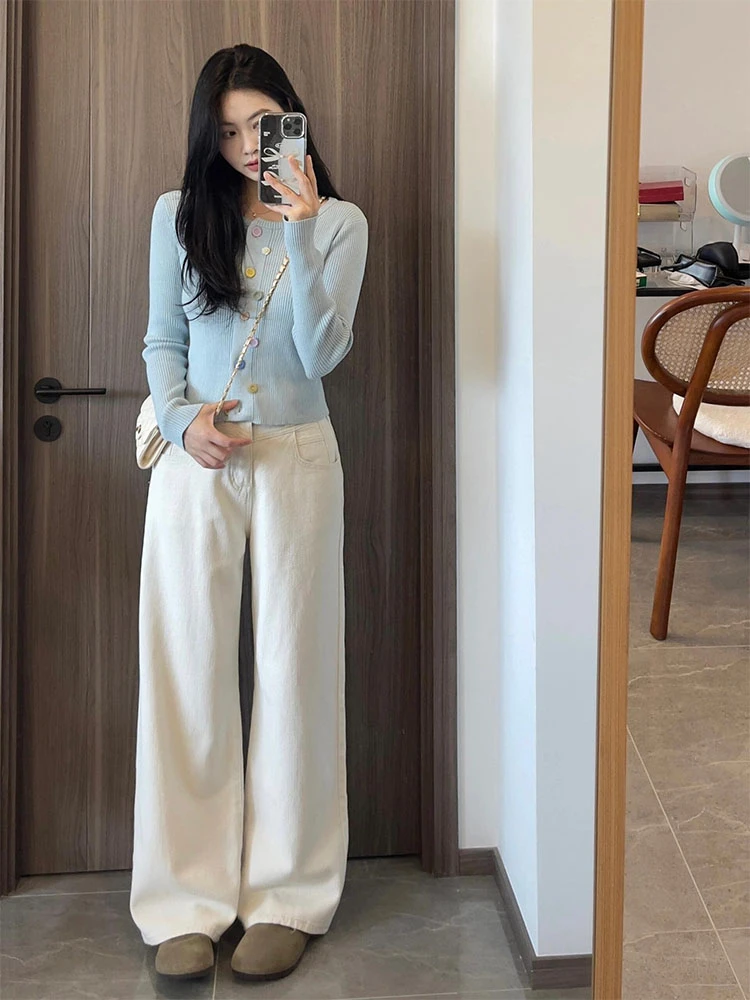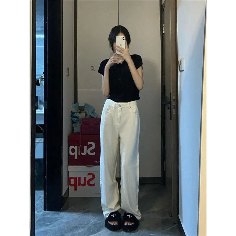 Jeans Women, High Waisted, Thin Stretch Denim Pants, Female Straight Leg Trousers (5 - 10 work days free delivery)